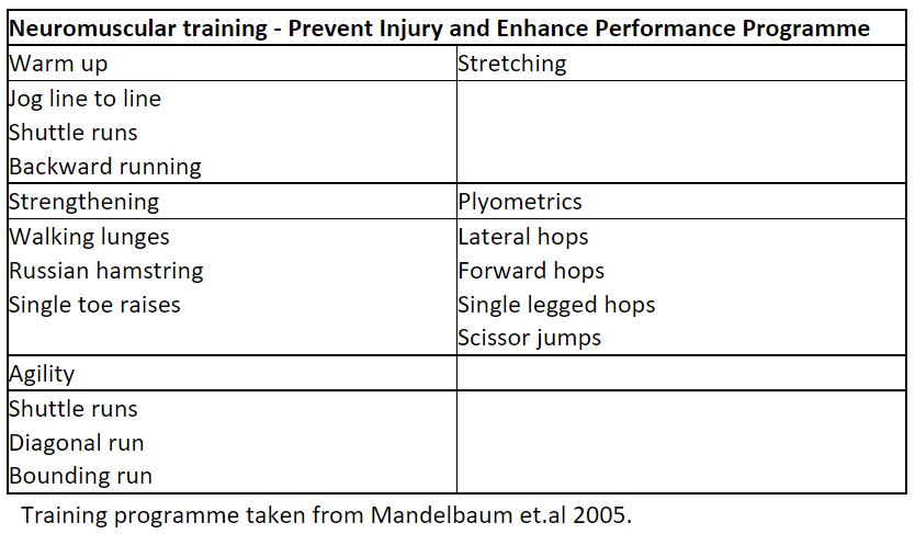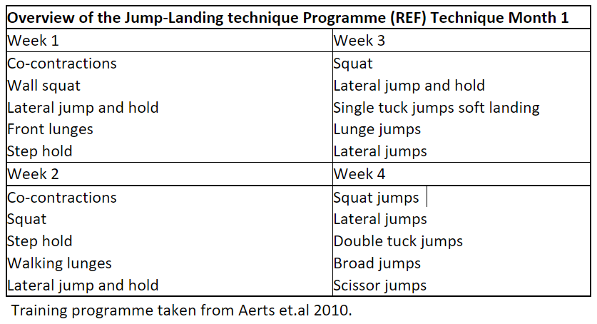 Having reviewed some of the literature and studies, which have prescribed training to help with, or even to improve landing techniques and exercises to develop neuromuscular control (see comparative programmes below), we can clearly see that the main body of training is strength exercises and plyometric drills, which would form a large part of an LTAD programme.